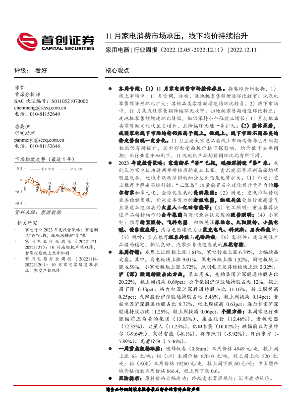 【首创证券】【20221211】20221211-首创证券-家用电器行业周报:11月家电消费市场承压,线下均价持续抬升-17页