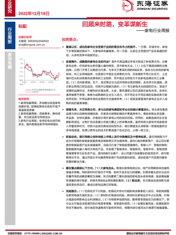 【东海证券】【20221219】20221219-东海证券-家电行业周报:回顾来时路,变革谋新生-10页