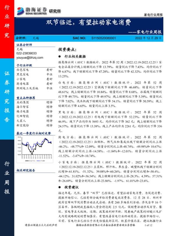 【渤海证券】【20221229】家电行业周报:双节临近,有望拉动家电消费-12页