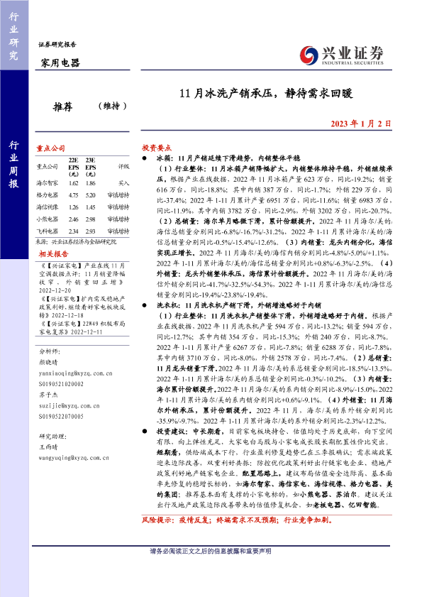 【兴业证券】【20230102】11月冰洗产销承压,静待需求回暖-11页
