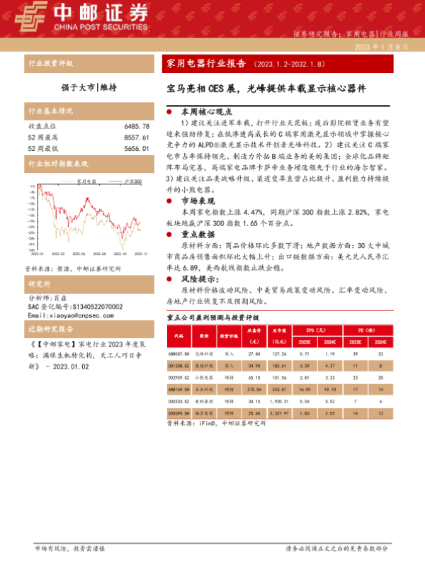 【中邮证券】【20230108】家用电器行业报告:宝马亮相CES展,光峰提供车载显示核心器件-12页