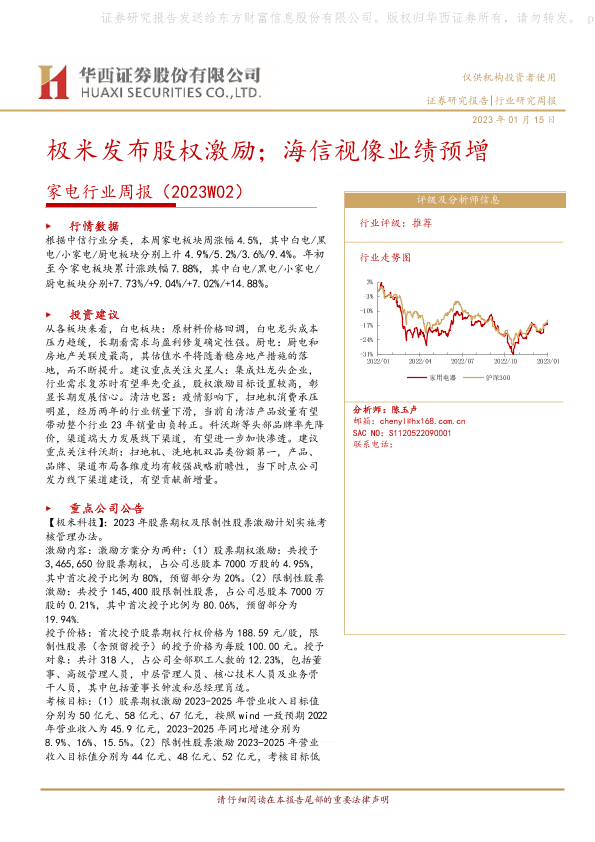 【华西证券】【20230115】家电行业周报(2023W02):极米发布股权激励;海信视像业绩预增-12页
