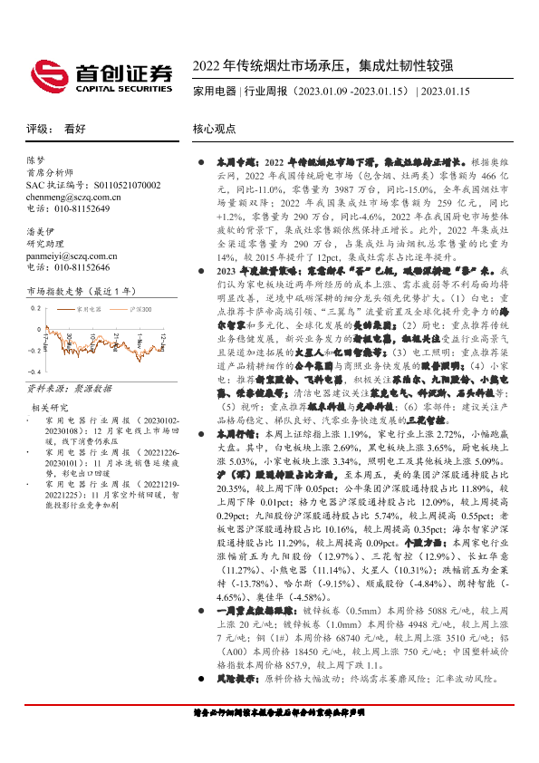 【首创证券】【20230115】20230115-首创证券-家用电器行业周报:2022年传统烟灶市场承压,集成灶韧性较强-18页