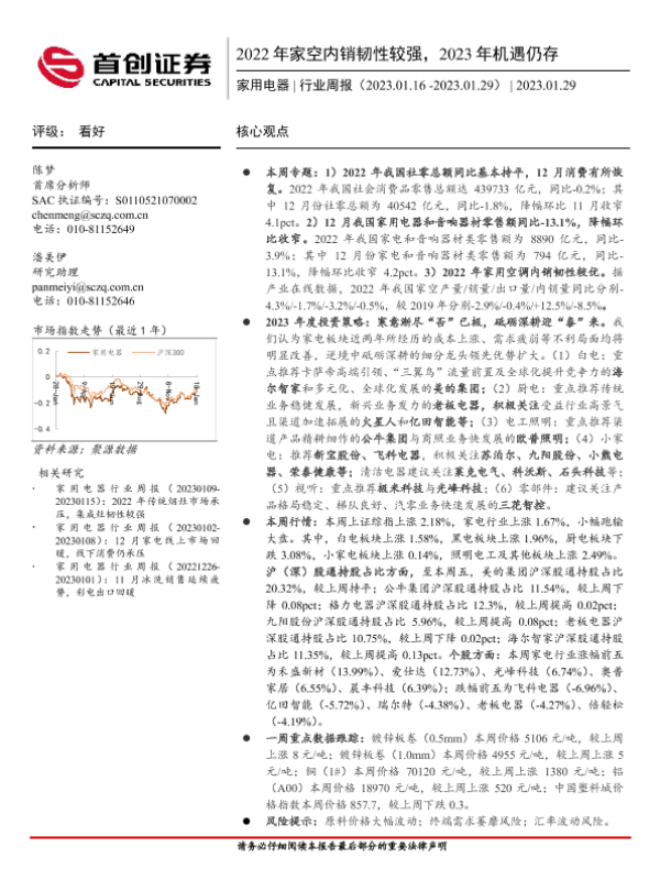 【首创证券】【20230129】20230129-首创证券-家用电器行业周报:2022年家空内销韧性较强,2023年机遇仍存-17页