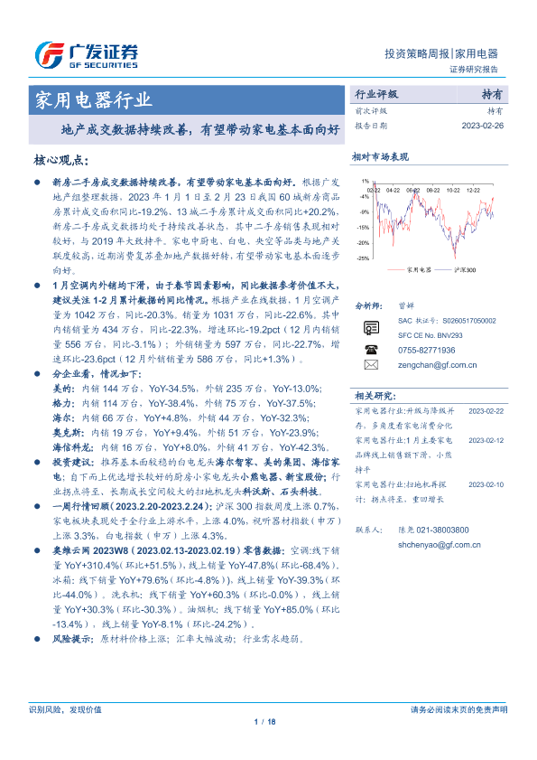 【广发证券】【20230226】20230226-广发证券-家用电器行业投资策略周报:地产成交数据持续改善,有望带动家电基本面向好-18页