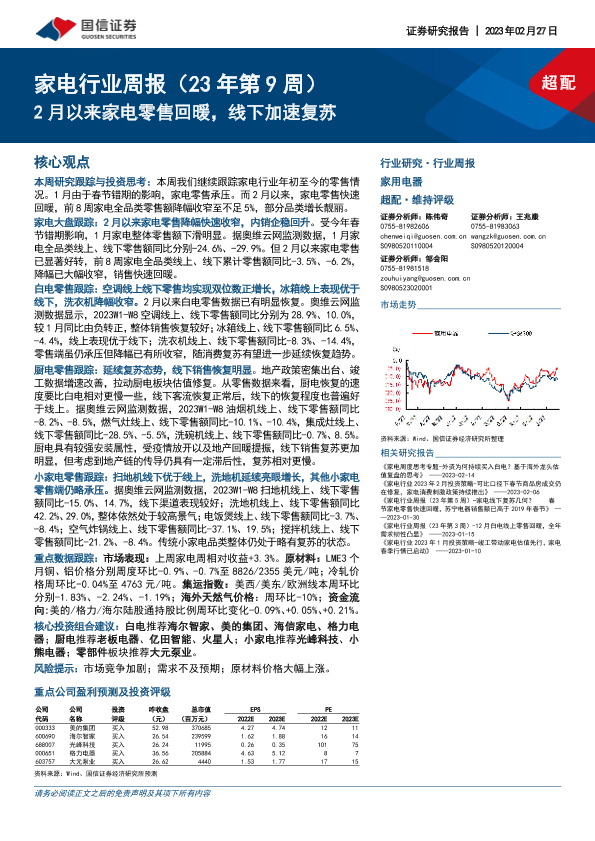 【国信证券】【20230227】20230227-国信证券-家电行业周报(23年第9周):2月以来家电零售回暖,线下加速复苏-16页
