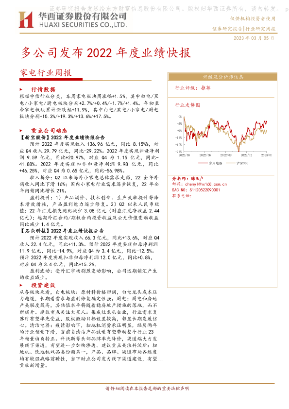 【华西证券】【20230305】家电行业周报:多公司发布2022年度业绩快报-12页