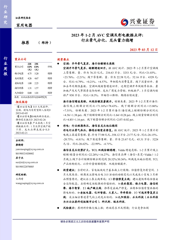 【兴业证券】【20230312】2023年1-2月AVC空调及彩电数据点评 行业景气分化,龙头蓄力稳增-10页