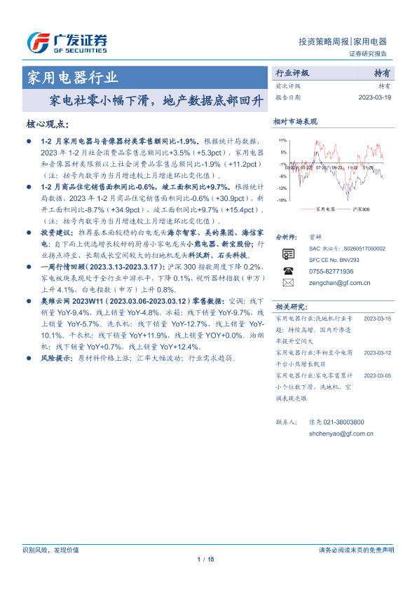 【广发证券】【20230319】20230319-广发证券-家用电器行业投资策略周报:家电社零小幅下滑,地产数据底部回升-15页