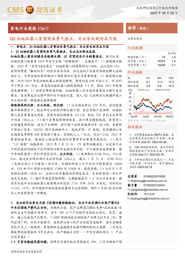 【海通证券】【20230402】20230402-招商证券-家电行业周报23w13:Q2扫地机器人有望迎来景气拐点,关注家电耐用品月报-10页