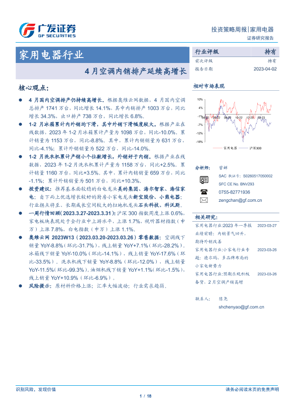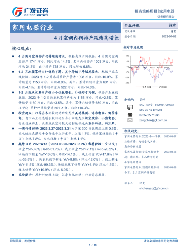 【广发证券】【20230402】20230402-广发证券-家用电器行业投资策略周报:4月空调内销排产延续高增长-18页