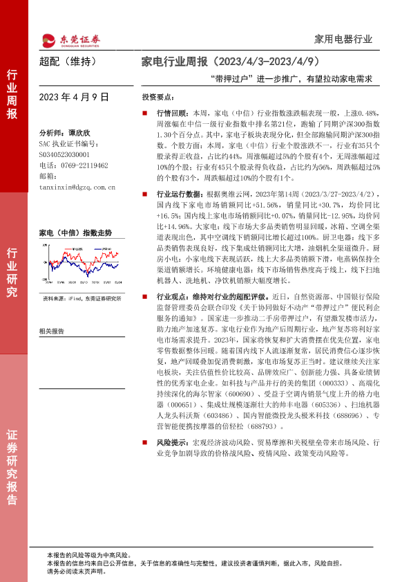 【东莞证券】【20230409】20230409-东莞证券-家电行业周报:“带押过户”进一步推广,有望拉动家电需求-15页