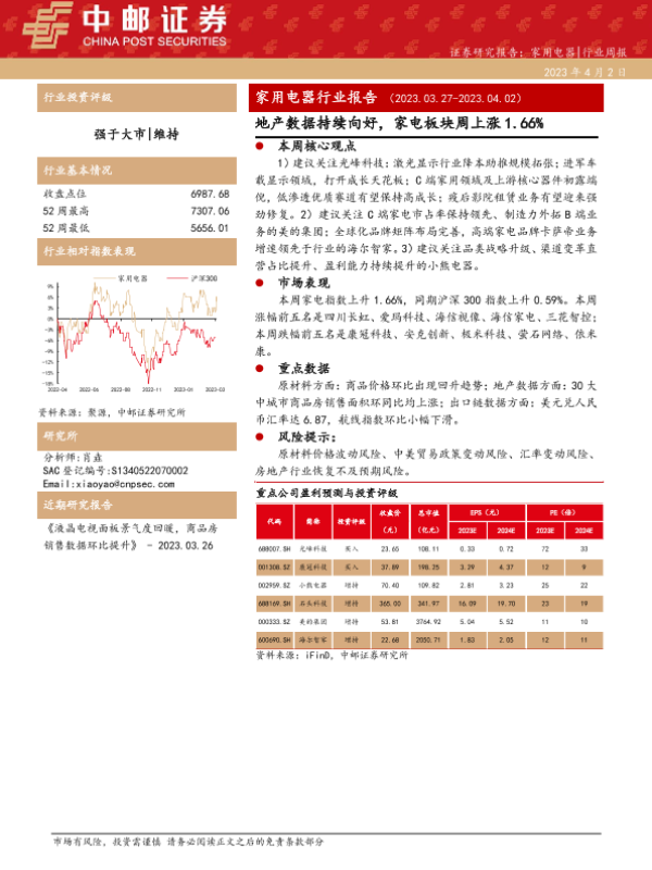 【中邮证券】【20230402】20230402-中邮证券-家用电器行业报告:地产数据持续向好,家电板块周上涨1.66%-14页