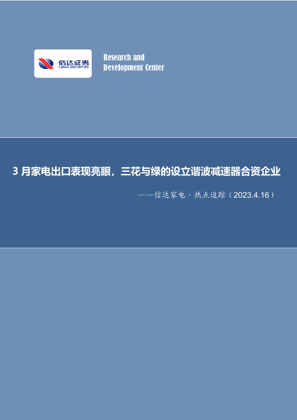 【信达证券】【20230416】3月家电出口表现亮眼,三花与绿的设立谐波减速器合资企业-14页