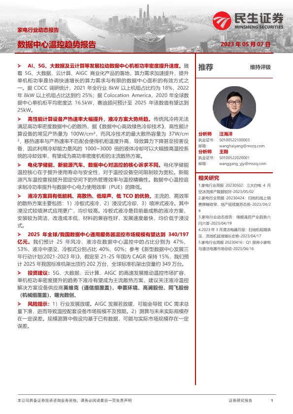 【民生证券】【20230507】家电行业动态报告:数据中心温控趋势报告-16页