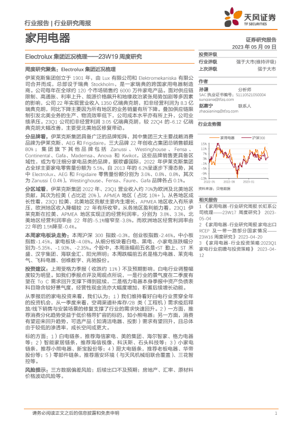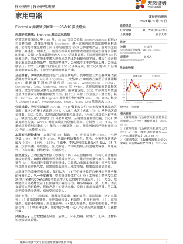 【天风证券】【20230509】家用电器23W19周度研究:Electrolux集团近况梳理-14页