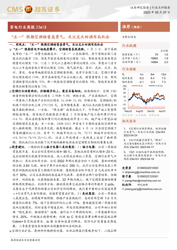 【海通证券】【20230507】20230507-招商证券-家电行业周报23w18:“五一”假期空调销售高景气,关注龙头回调布局机会-17页
