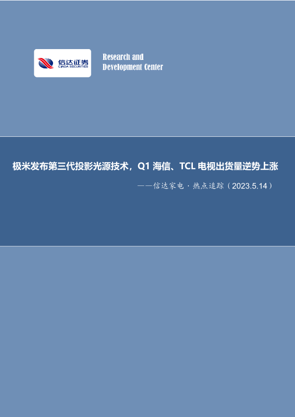 【信达证券】【20230514】极米发布第三代投影光源技术,Q1海信、TCL电视出货量逆势上涨-13页
