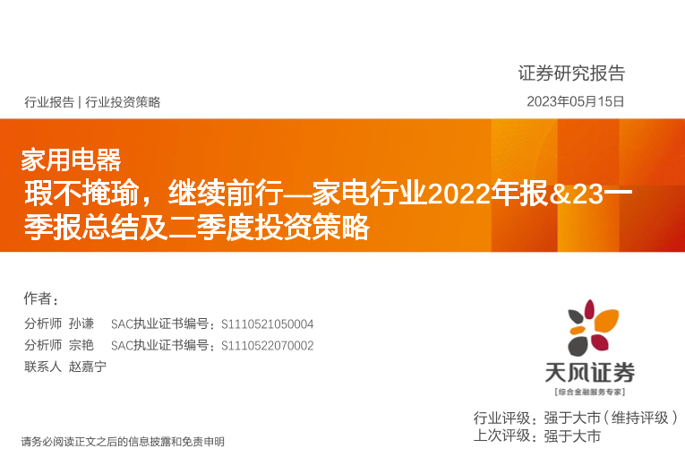 【天风证券】【20230515】瑕不掩瑜,继续前行—家电行业2022年报&23一季报总结及二季度投资策略-53页