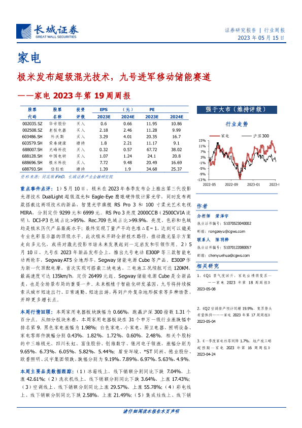 【长城证券】【20230515】家电2023年第19周周报:极米发布超级混光技术,九号进军移动储能赛道-28页