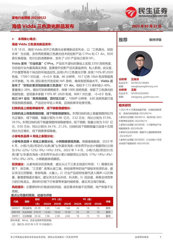 【民生证券】【20230522】家电行业周报:海信Vidda三色激光新品发布-16页