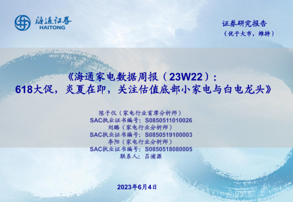 【海通证券】【20230604】海通家电数据周报(23W22):618大促,炎夏在即,关注估值底部小家电与白电龙头-15页