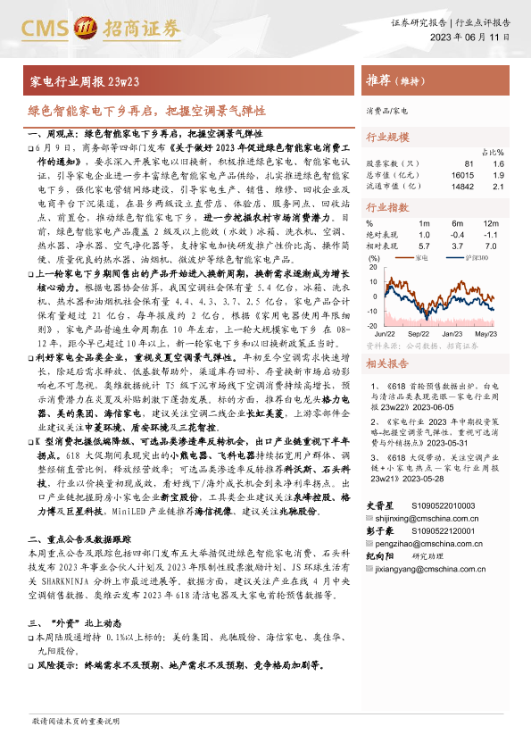 【海通证券】【20230611】20230611-招商证券-家电行业周报23w23:绿色智能家电下乡再启,把握空调景气弹性-10页