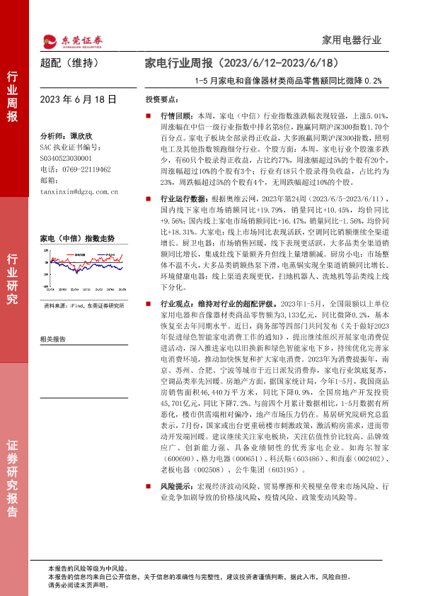 【东莞证券】【20230618】20230618-东莞证券-家电行业周报:1-5月家电和音像器材类商品零售额同比微降0.2%-15页