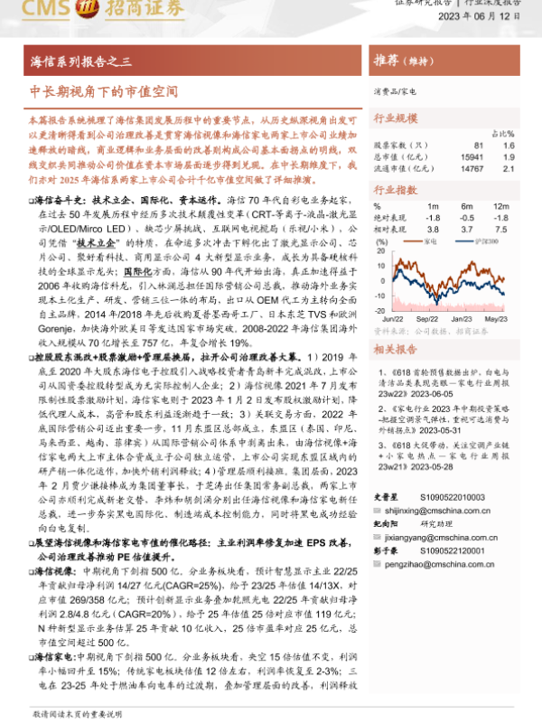【海通证券】【20230612】20230612-招商证券-海信系列报告之三:中长期视角下的市值空间-39页