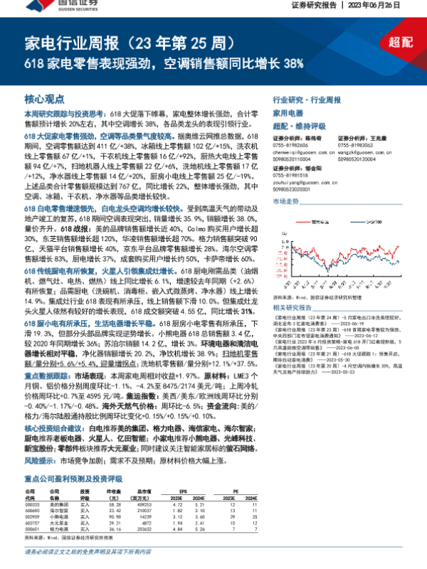 【国信证券】【20230626】家电行业周报(23年第25周):618家电零售表现强劲,空调销售额同比增长38%-15页
