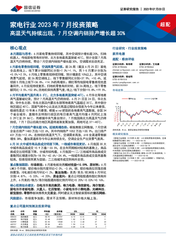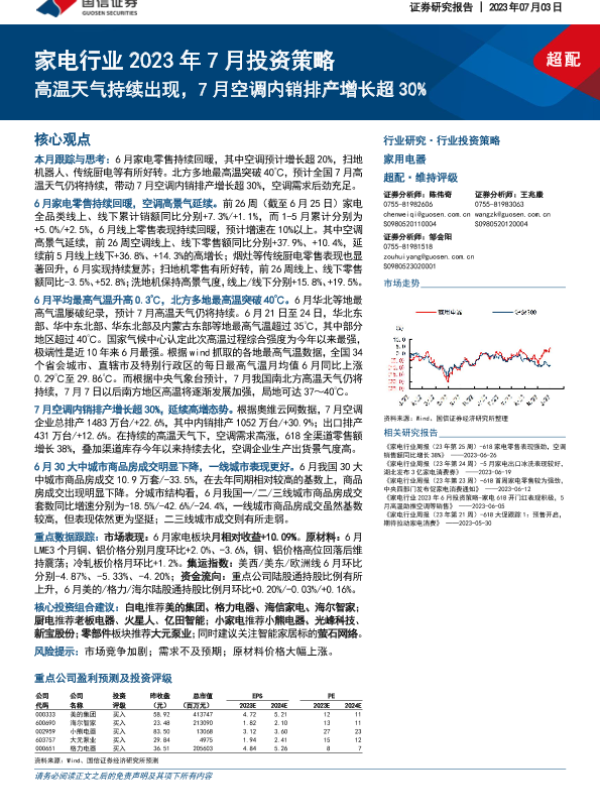 【国信证券】【20230703】家电行业2023年7月投资策略:高温天气持续出现,7月空调内销排产增长超30%-17页