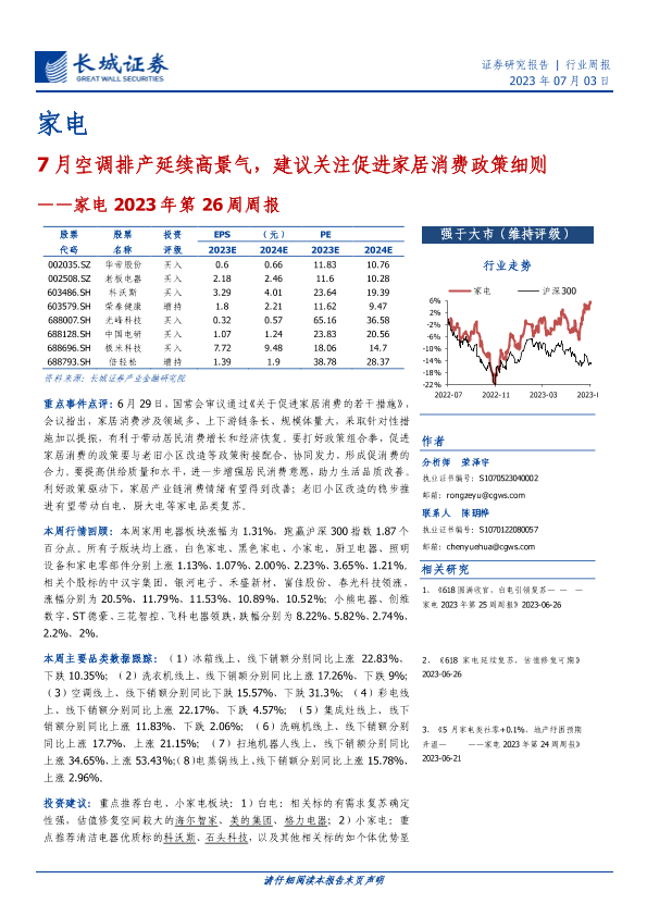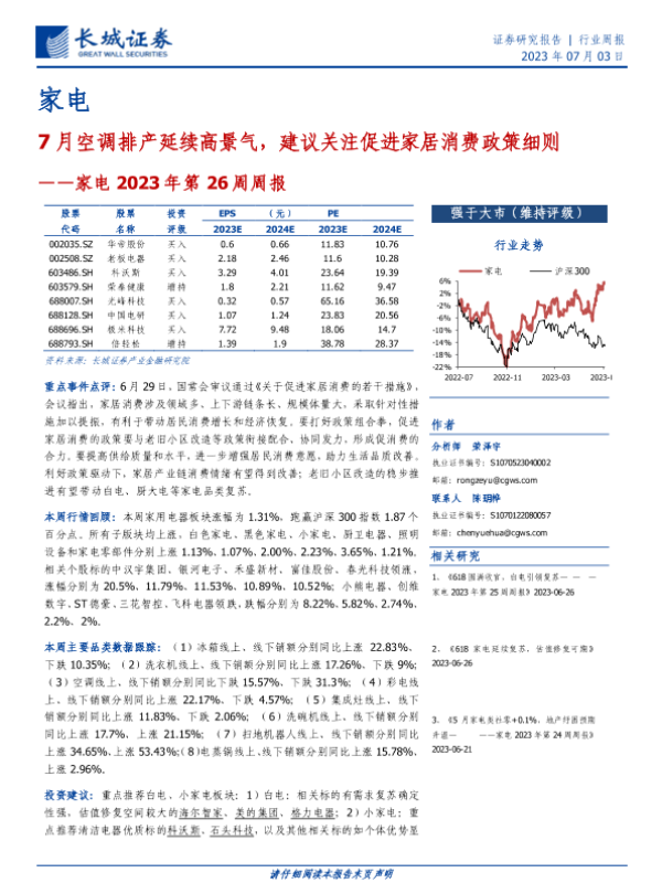 【长城证券】【20230703】家电2023年第26周周报:7月空调排产延续高景气,建议关注促进家居消费政策细则-29页