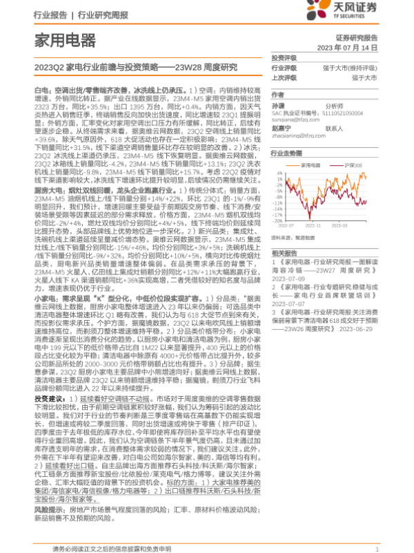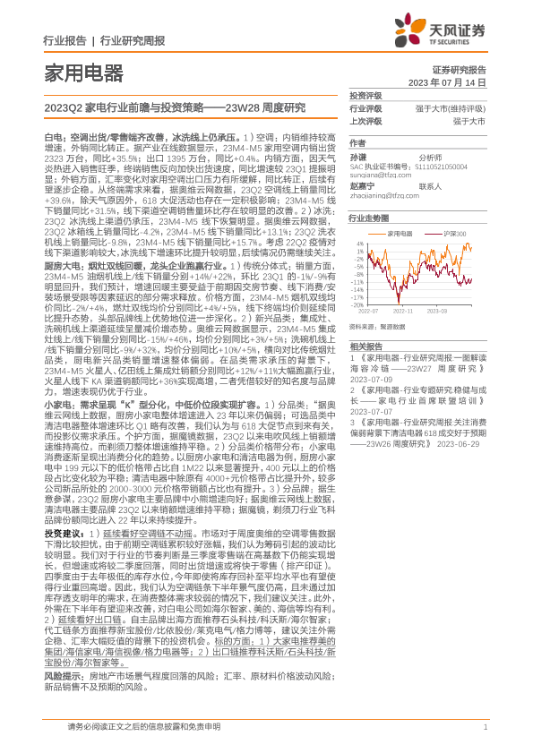 【天风证券】【20230714】2023Q2家电行业前瞻与投资策略——23W28周度研究-25页