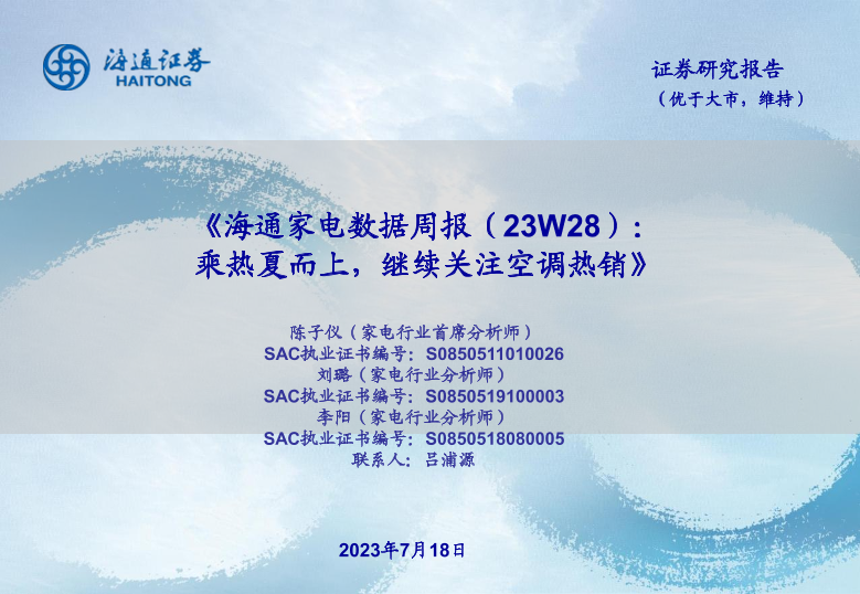【海通证券】【20230718】海通家电数据周报(23W28):乘热夏而上,继续关注空调热销-15页