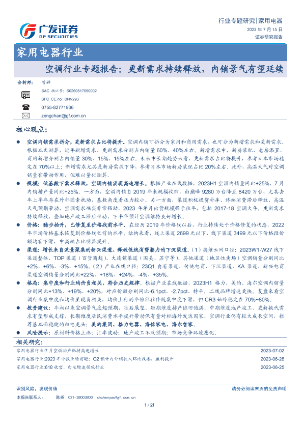 【广发证券】【20230715】空调行业专题报告:更新需求持续释放,内销景气有望延续-21页