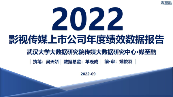 【武汉大学大数据研究院传媒大数据研究中心·媒至酷】【20220101】2022影视传媒上市公司年度绩效数据报告-69页