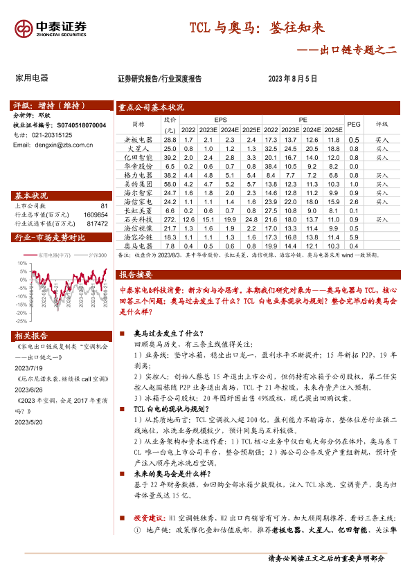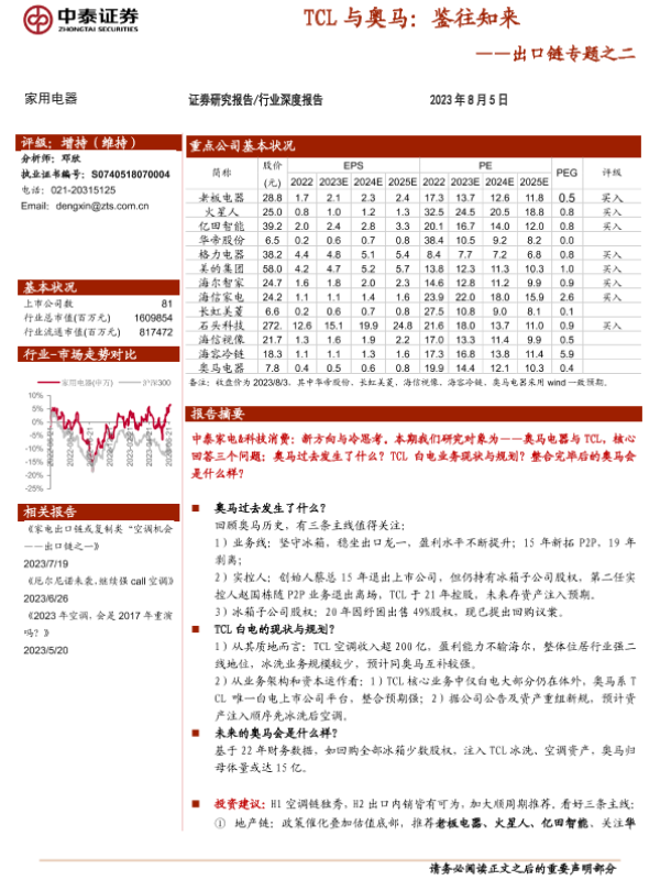 【中泰证券】【20230805】TCL与奥马:鉴往知来——出口链专题之二-14页