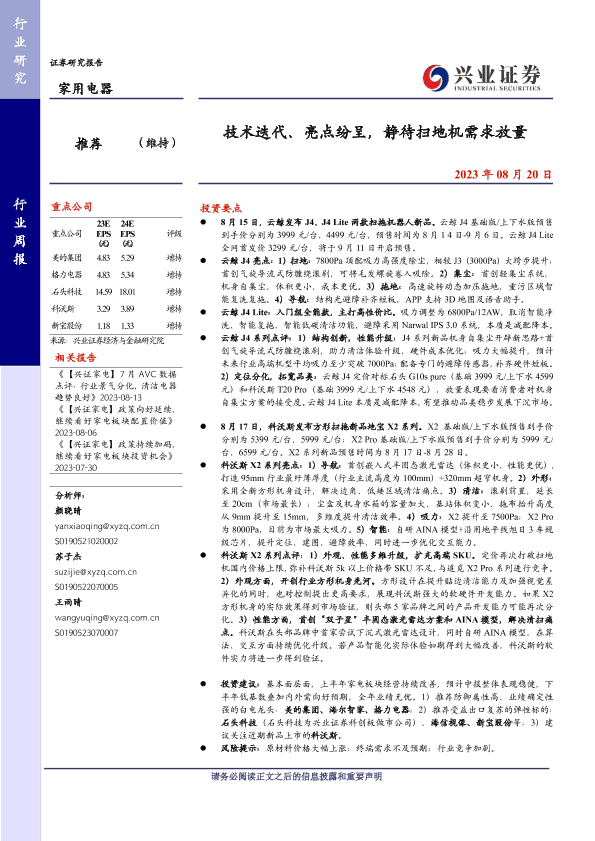 【兴业证券】【20230820】20230820-兴业证券-家用电器行业周报:技术迭代、亮点纷呈,静待扫地机需求放量-12页