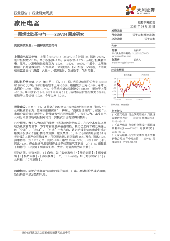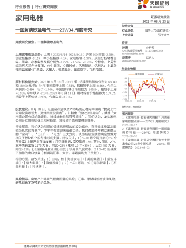 【天风证券】【20230823】家用电器23W34周度研究:一图解读欧圣电气-19页