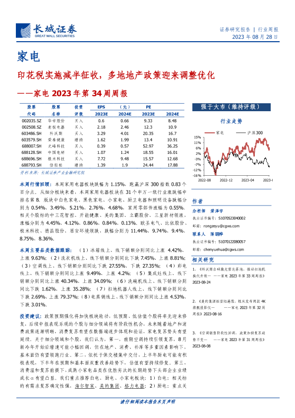 【长城证券】【20230828】家电2023年第34周周报:印花税实施减半征收,多地地产政策迎来调整优化-31页