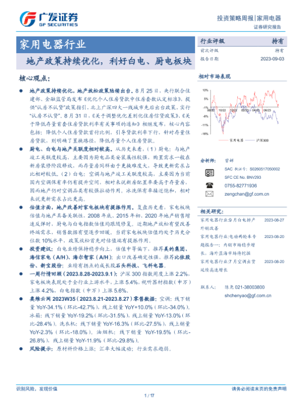 【广发证券】【20230903】20230903-广发证券-家用电器行业投资策略周报:地产政策持续优化,利好白电、厨电板块-17页
