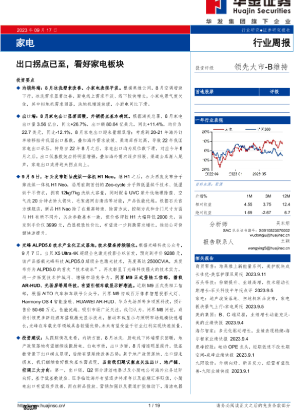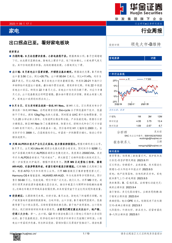 【华金证券】【20230917】20230917-华金证券-家电行业周报:出口拐点已至,看好家电板块-19页