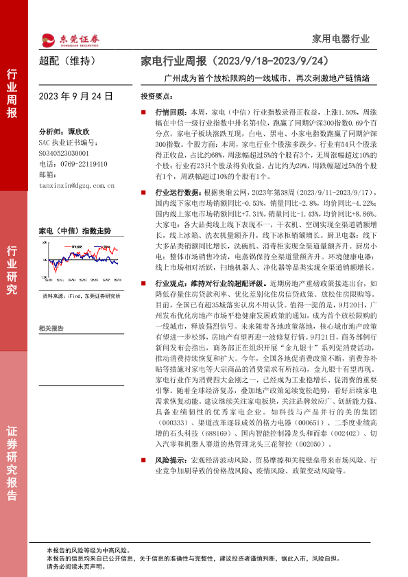 【东莞证券】【20230924】20230924-东莞证券-家电行业周报:广州成为首个放松限购的一线城市,再次刺激地产链情绪-15页
