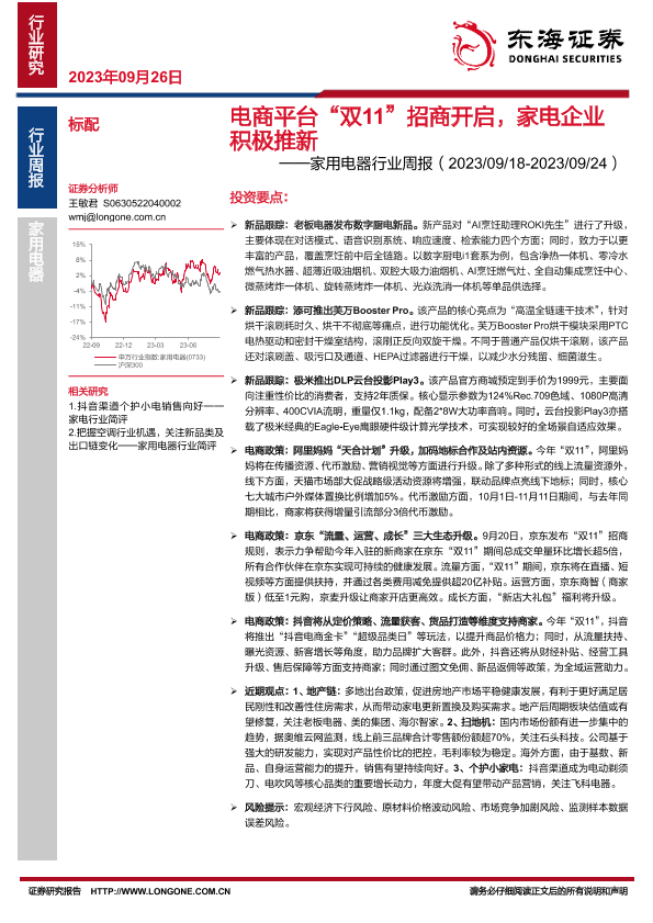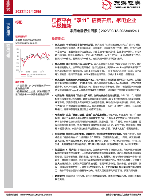 【东海证券】【20230926】20230926-东海证券-家用电器行业周报:电商平台“双11”招商开启,家电企业积极推新-10页