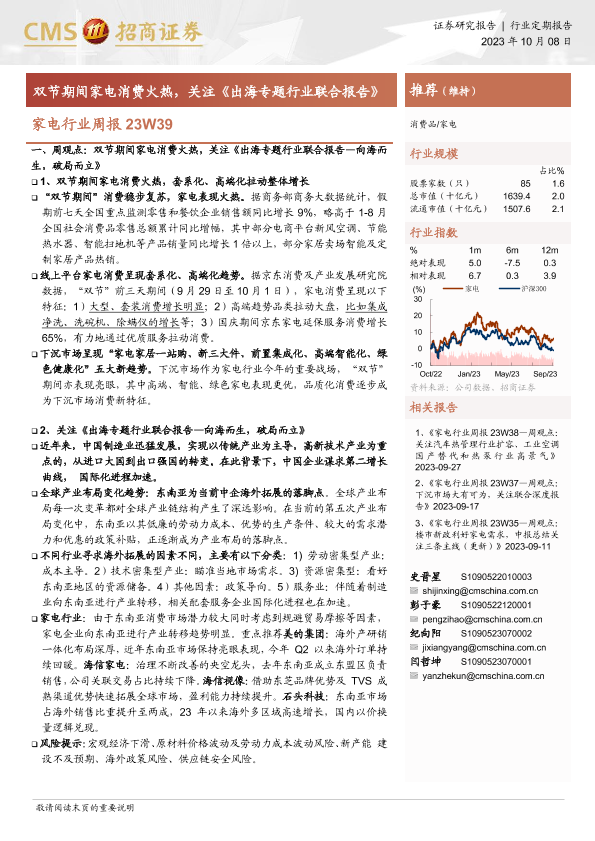 【海通证券】【20231008】20231008-招商证券-家电行业周报23W39:双节期间家电消费火热,关注《出海专题行业联合报告》-10页
