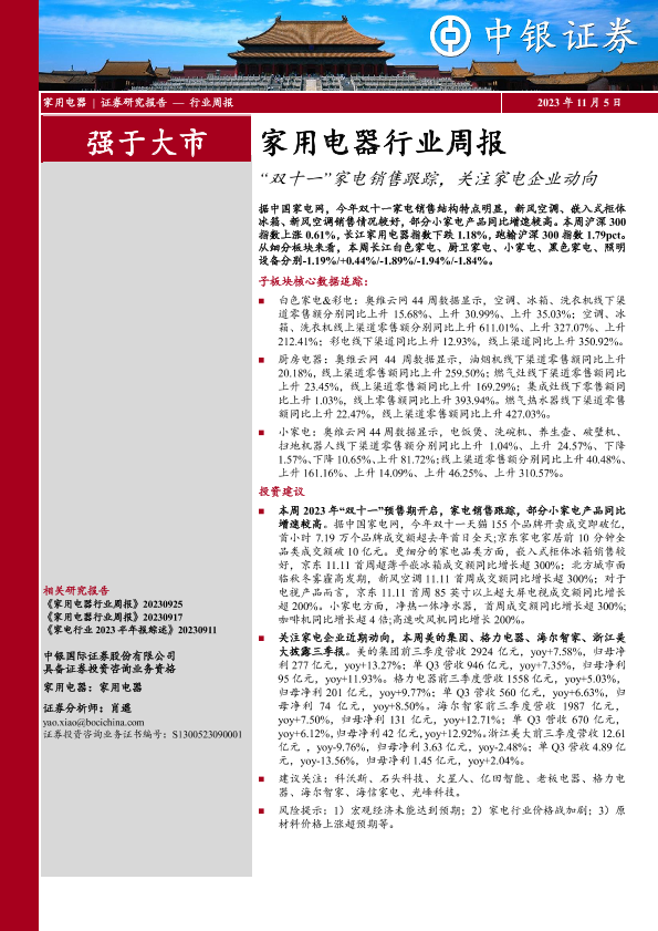 【中银证券】【20231105】20231105-中银证券-家用电器行业周报:“双十一”家电销售跟踪,关注家电企业动向-26页