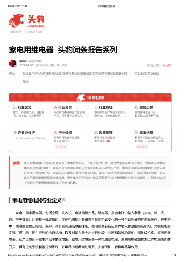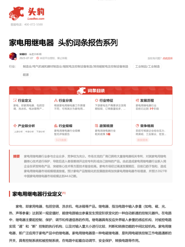 【头豹研究院】【20231011】家电用继电器 头豹词条报告系列-14页