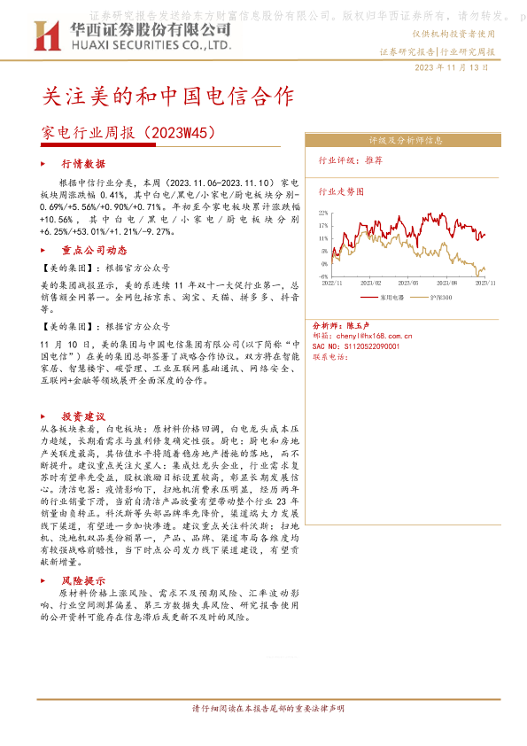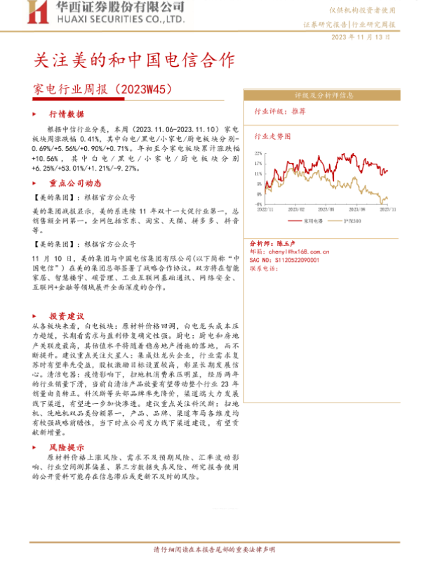 【华西证券】【20231113】家电行业周报(2023W45):关注美的和中国电信合作-11页
