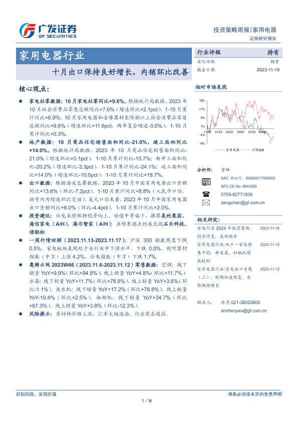 【广发证券】【20231119】20231119-广发证券-家用电器行业投资策略周报:十月出口保持良好增长,内销环比改善-16页