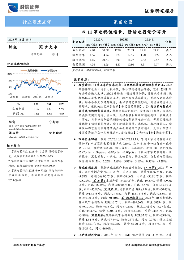 【财信证券】【20231119】双11家电稳健增长,清洁电器量价齐升-13页